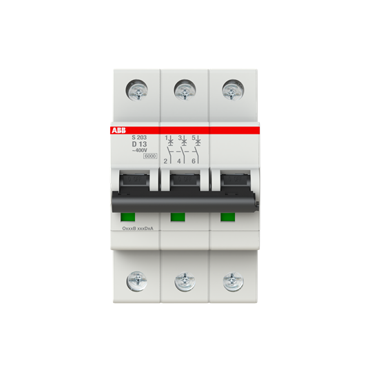 The ABB 2CDS253001R0131 — S203-D13 Mini Circuit Breaker D-Char.,6kA,13A,3P
