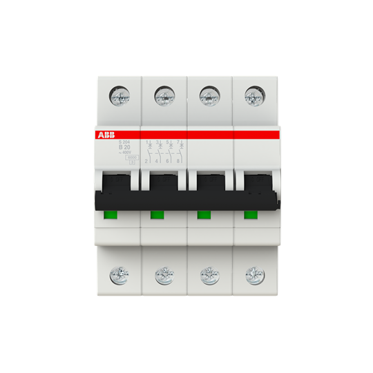 The ABB 2CDS254001R0205 — S204-B 20 Mini Circuit Breaker B-Char.,6kA,20A,4P